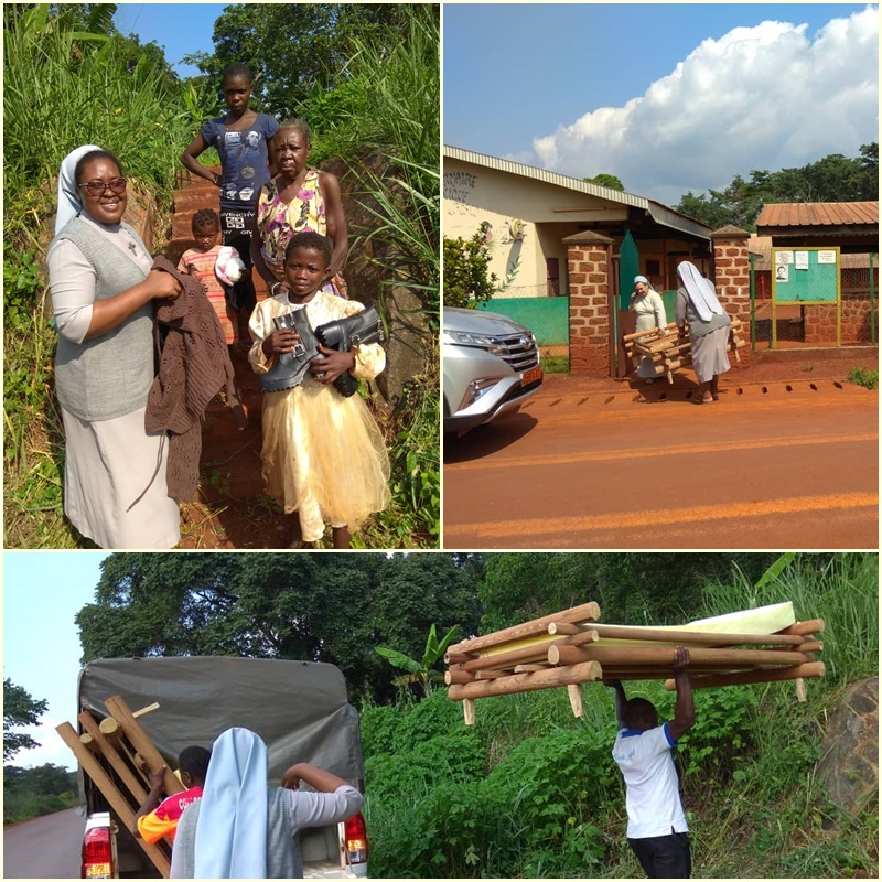 Ale nasza pomoc jest wciąż kontynuowana. Siostra Nadege troszczy się o zapewnienie żywności, ubrań. S. Agnieszka i S.Anna postarały się o zrobienie łóżek i zakupiły materace. Łóżka zostały wykonane z bambusów przez nauczyciela i uczniów klasy CM 2 ze Szkoły Podstawowej Św. Jana Bosco w Doume w ramach prac technicznych. W minioną sobotę tj. 29 maja s. Nadege przy pomocy s. Edyty zawiozły łóżka i materace do rodziny z Sibita. Wielka radość i wdzięczność tych ludzi i dzieci pozostanie w naszych sercach na długo.