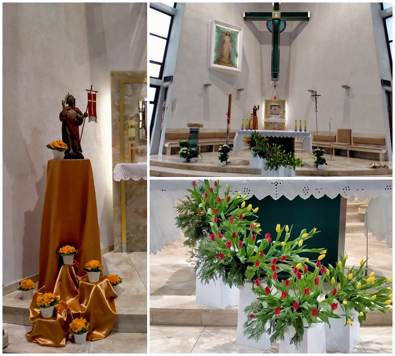 My, Siostry Pallotynki poza służbą przy organach i w zakrystii, brałyśmy udział w modlitwie różańcowej… oczywiście po słowacku! Siostra Elżbieta zadbała o wystrój świątyni na to szczególne święto.