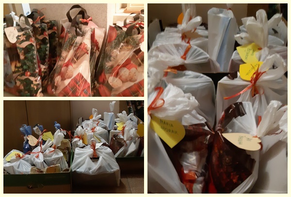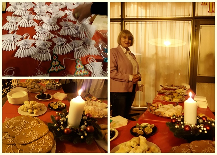 Też miał miejsce kiermasz wypieków i ozdób świątecznych. Zebrane koszty pójdą na leczenie dziecka chorego, przebywającego na onkologii. Na zdjęciach są aniołki, które robiła s. Galina Soroczyńska.