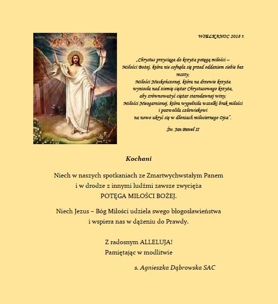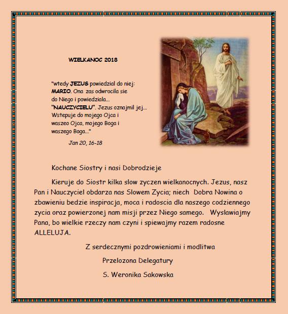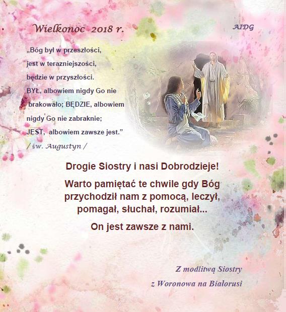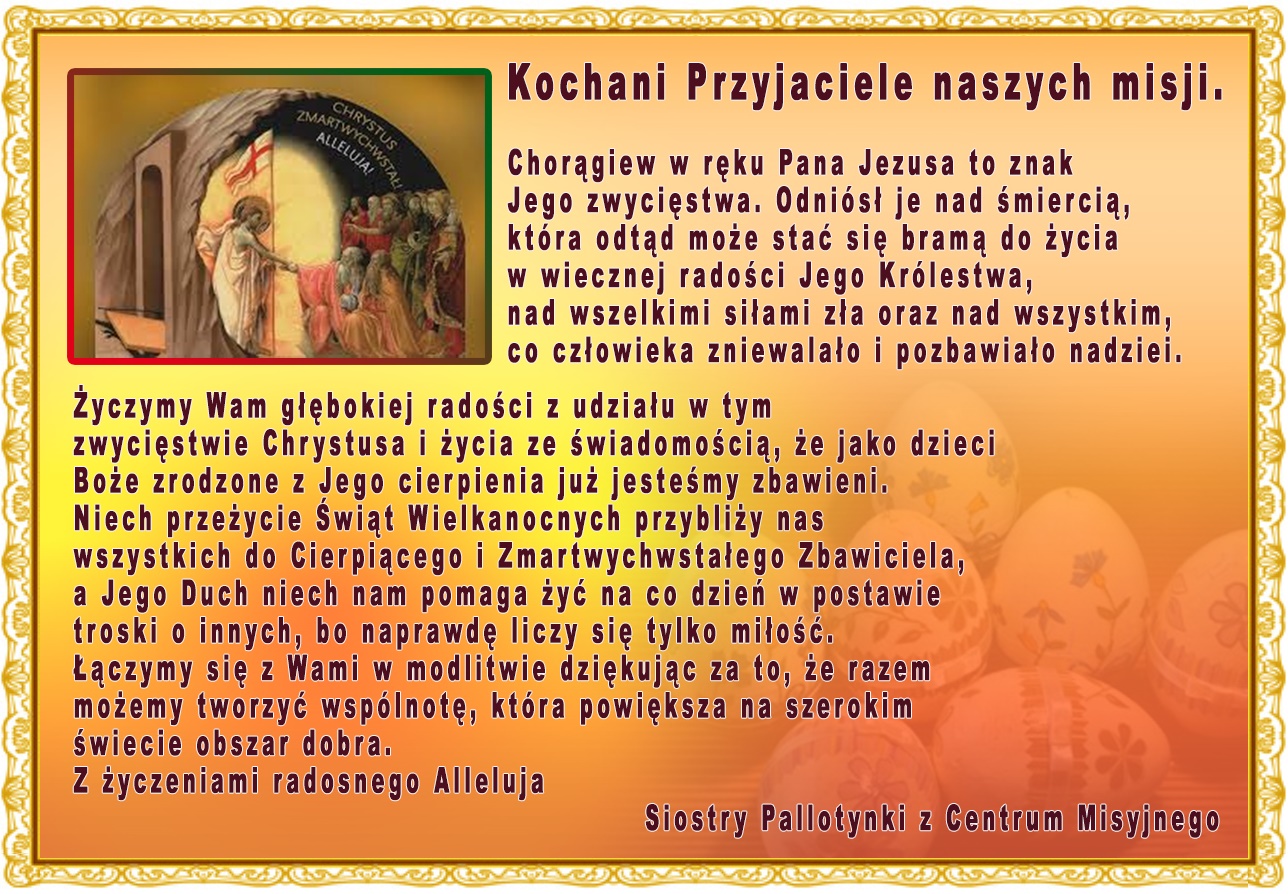 Kochane Siostry i nasi Dobrodzieje, niech radość Wielkanocnego Poranka wypełnia nasze serca.