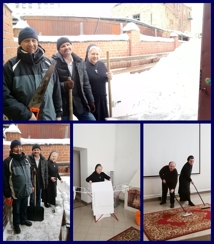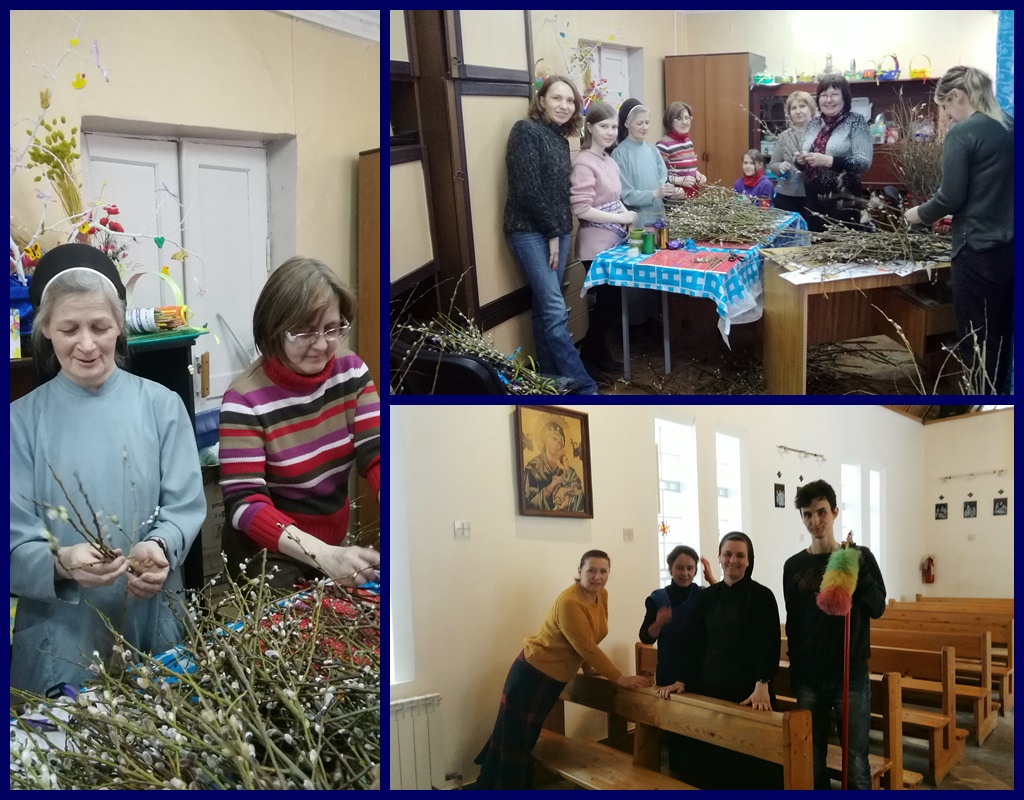 Ponadto w ciągu tygodnia parafianie przynosili gałązki, z których w te właśnie sobotę przygotowuje się palmy na Niedzielę Palmową. Narwać gałązek gdy jest tak dużo śniegu to wcale nie jest takie proste. Zycie parafialne wrze. Jest to bardzo mile i radosne „wrzenie”, w którym my siostry mamy tez swoje niezastąpione miejsce.