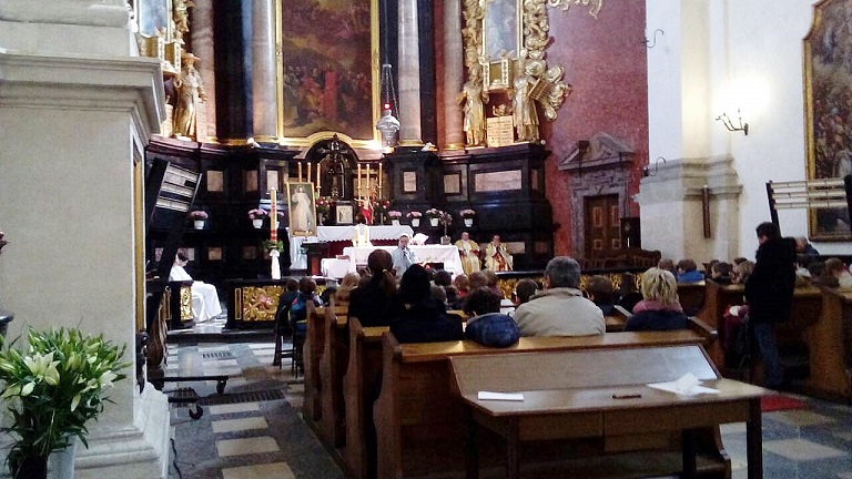 23 kwietnia s. Anita i s. Małgorzata były na niedzieli Misyjnej w kościele pw. Świętych Apostołów Piotra i Pawła w Krakowie. W tej pierwszej barokowej świątyni w Polsce sakrament małżeństwa zawarli rodzice św. Jana Pawła II, o czym informuje tablica umieszczona po lewej stronie kościoła. Proboszcz Parafii, ks. prof. Jan Machniak oraz pozostali kapłani przyjęli siostry bardzo życzliwie, a parafianie z zaciekawieniem słuchali świadectwa s. Anity z pracy w Kamerunie. Hojne ofiary świadczyły o wrażliwości parafian na potrzeby chrześcijan z Afryki. Ponieważ była to Niedziela Miłosierdzia Bożego, siostrom udało się dotrzeć w godzinie miłosierdzia do Sanktuarium w Łagiewnikach i modlić się koronką razem z zebraną tam rzeszą wiernych.