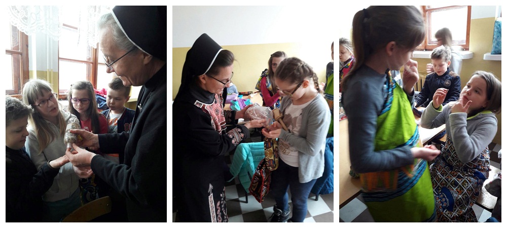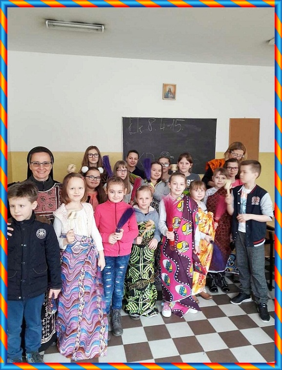 W sobotę, 18.03.2017r. s. Anita i s. Ludwika spotkały się z „Małym Misjonarzem” w Wyszkowie. Dzieci z ogromnym zainteresowaniem słuchały opowieści o Kamerunie, szczególnie te, które dotyczyły życia ich rówieśników. Ogromną niespodzianką dla polskich dzieci były prezenty, które przywiozły siostry z Kamerunu, przekazane przez dzieci afrykańskie, takie jak: pierniki, orzeszki ziemne, kakao i suszone ananasy. Tego dnia kawałek Afryki dotknął ziemi i serc polskich dzieci, które przebrały się w stroje afrykańskie. Małi misjonarze byłi bardzo wdzięczni siostrom misjonarkom za ich piękną i trudną pracę. W dowód wdzięczności dzieci z Wyszkowa napisały listy do sióstr Misjonarek, oraz swoich rówieśników.