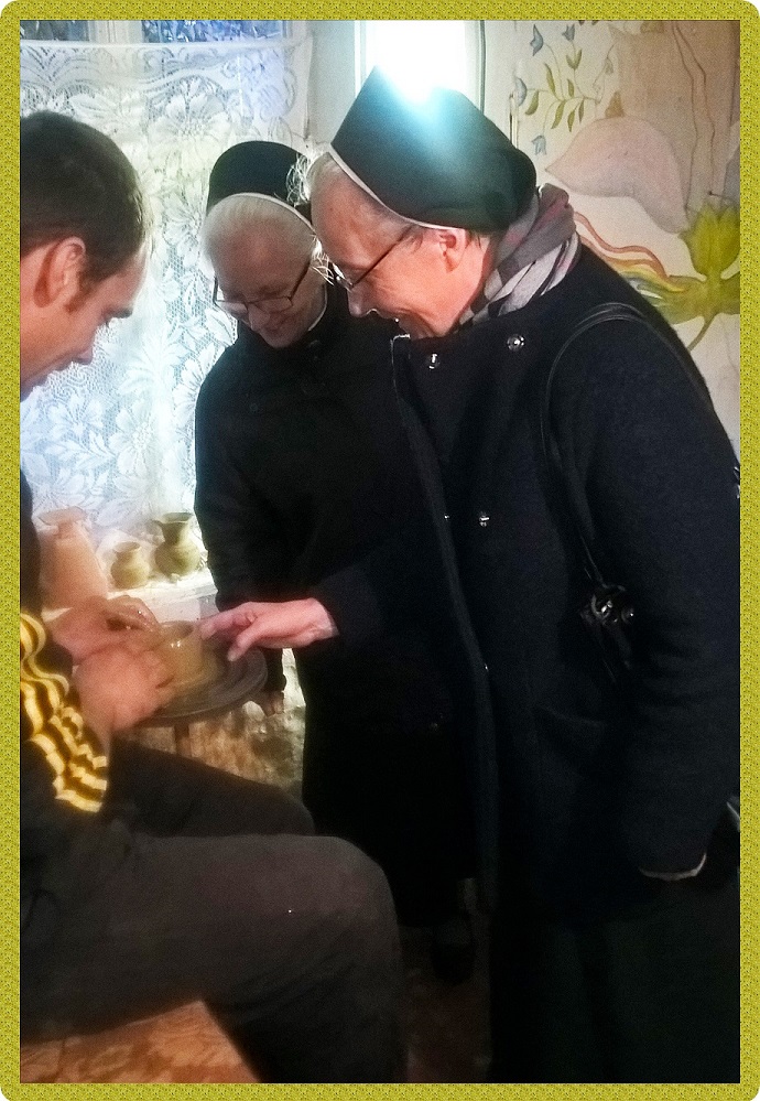 We wtorek s. Ludwika i s. Małgorzata po Mszy św. złożyły krótką wizytę u ks. Proboszcza Jarosława Olszewskiego SAC. Miały również okazję zobaczyć, jak postępują prace przy budowie kościoła na Malowance. Z Żytomierza siostry pojechały do Kamiennego Brodu zatrzymując się w Dowbyszu na modlitwę przy grobie ks. Aleksandra Milewskiego SAC. W naszej kolejnej placówce w Kamiennym Brodzie spotkały się z s. Anną Karpińską i s. Jadwigą Puchalską. Siostry prowadzą tam katechezę z dziećmi i pracują w zakrystii. W drodze powrotnej do Gródka, w okolicy miejscowości Biały Kamień, gdzie kiedyś na łowy jeździł król Jan Sobieski, siostry mogły odwiedzić warsztat garncarski p. Iwana, który pokazał im proces wyrabiania naczyń na kole garncarskim oraz całą kolekcję dzbanów, filiżanek, świeczników i innych swoich wyrobów.