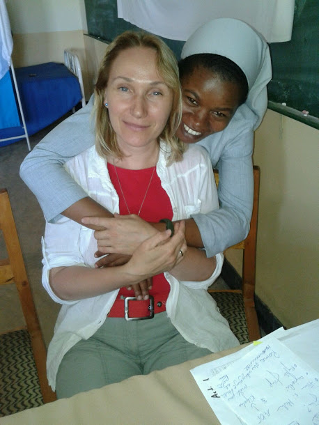 Dzisiaj Święto Wniebowstąpienia. Jezus powiedział: Idźcie na cały świat i głoście Ewangelię. Jakże inaczej brzmią dla mnie te słowa 6000 km od domu, na misji w Afryce, gdy mam dziś spotkanie ewangelizacyjne z grupą świeckich z ZAK-u. Jestem szczęśliwa, że mam szansę tak dosłownie iść za słowami Jezusa. Dziś kilka luźnych, różnych spostrzeżeń wolontariuszki Najpierw piękno teg kraju- czytałam, że Rwanda to kraj wiecznej wiosny i tak jest rzeczywiście. Wszystko naokoło kwitnie – jest zielono i pięknie. Wokół malownicze wzgórza. Co do fauny, to oprócz olbrzymich, 5 cm karaluchów, z którymi walczę w domu, nie miałam jeszcze okazji podziwiać innych, chociaż 2, 5 godz. stąd znajduje się park narodowy Akagera, w którym można podziwiać żyrafy, słonie, antylopy etc. Zdziwienie moje budzi to, że tak jak u nas na drzewach i liniach przesyłowych siedzą wróble tak tutaj są to stada papug. W naszym ogrodzie na drzewach rosną papaje, banany, markuje - słowem istny raj. Jemy tutaj głównie warzywa i owoce- śmieję się, że jestem na diecie dr Dąbrowskiej - przyda się ;-) Mięso jada się tutaj w święta bo ludzi na nie po prostu nie stać. W nocy niebo jest przepiękne, widać pełno gwiazd, bo nie ma tyle świateł co w Europie. Ale na próżno ja geograf szukam gwiazdy polarnej- przecież jesteśmy na półkuli południowej- jest wiec krzyż południa. Ciekawe są środki transportu jakimi przemieszczają się Rwandyjczycy: zamiast taxi używa się tutaj taxi- velo ( patrz zdjęcie )a w stolicy Kigali taxi-moto. Właściciele tych pojazdów za niewielką opłatą przewożą ludzi na bagażniku czy tylnym siedzeniu. Życie codzienne: nie mamy pralki ani zmywarki do naczyń- zbyt często prąd jest wyłączany – wszystko robimy ręcznie (na zdjęciu zmywanie po kolacji).Nie ma też telewizji – w niedzielny wieczór podczas rekreacji tańczymy - nauczyłam afrykańskie siostry poloneza Wszyscy żyją wolniej, bez pospiechu, patrzenia na zegarek. Powoli się tego uczę i mam nadzieje że mi to zostanie po powrocie do Polski.Pozdrawiam serdecznie i proszę o modlitwę Monika Sosnowska OV